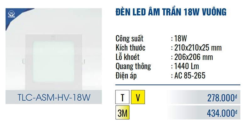 Âm Trần Siêu Mỏng Vuông (Trắng) 18W TLC