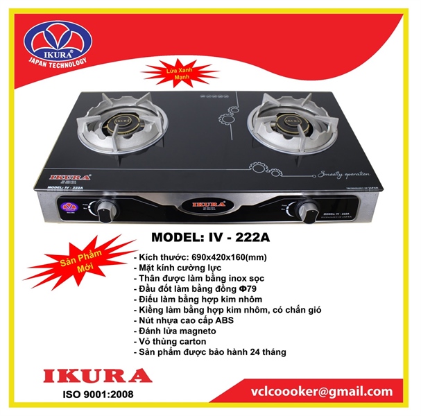Bếp Gas Đôi Kính Điếu Hợp Kim Nhôm-222A IKURA